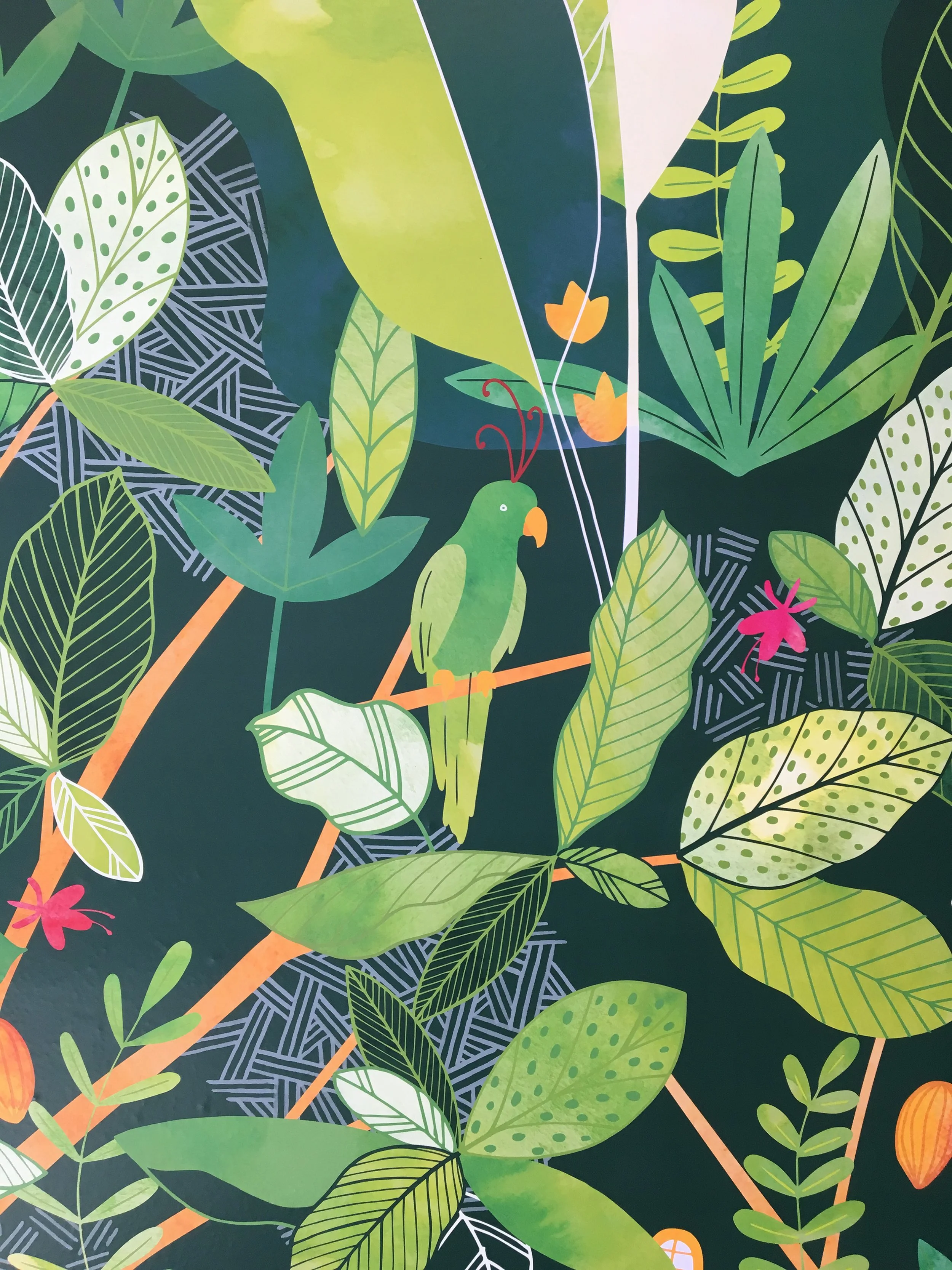 What I did: Overall creative direction; graphic design and illustration for some applications including repeating wallpaper design, mural elements, kids’ story book illustrations