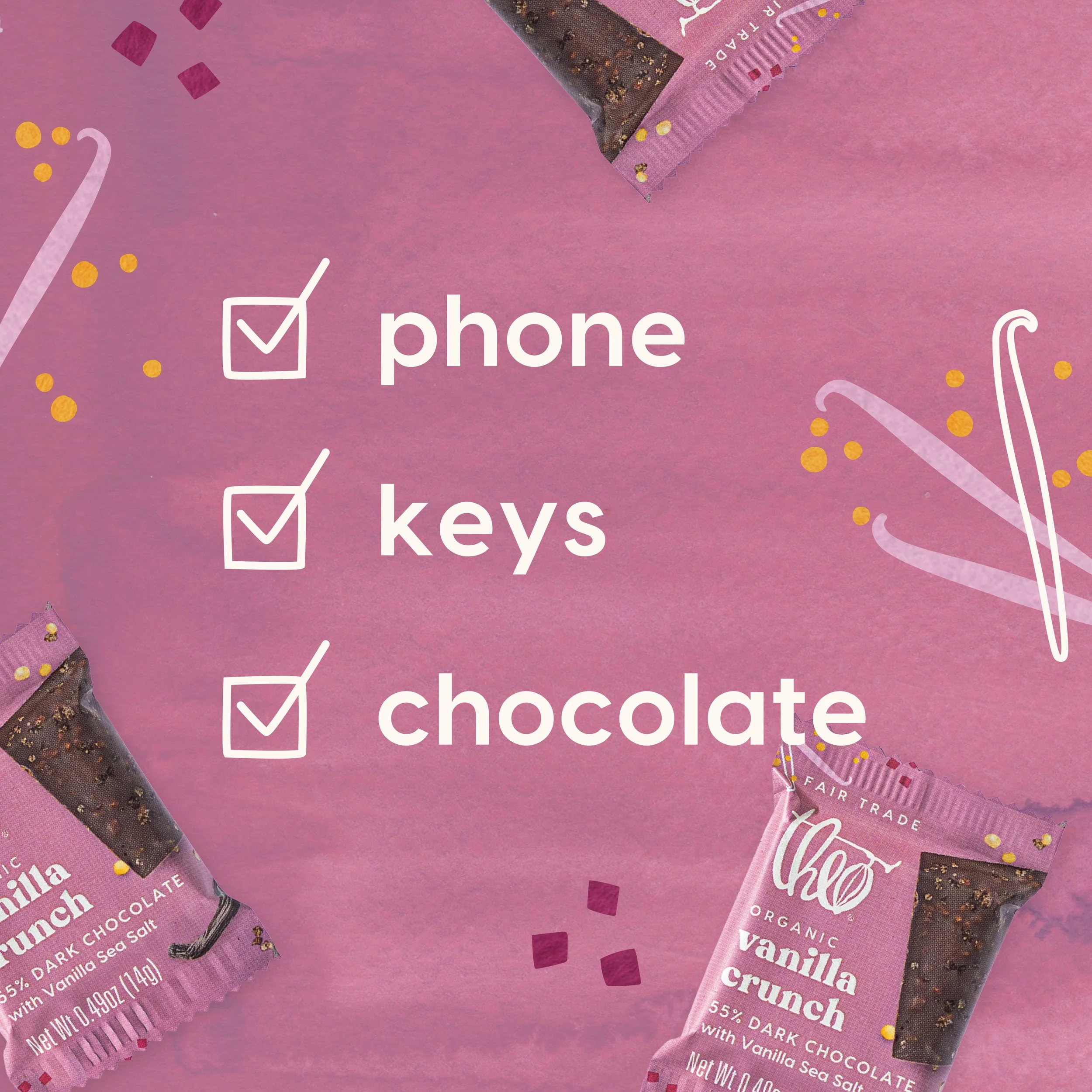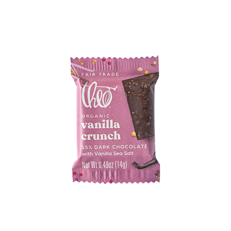 Theo Chocolate’s newest product line features individually-wrapped chocolate squares topped with a dusting of salt for a perfectly crunchy finish. Available in a multipack pouch, they’re the perfect chocolate treat for on-the-go. Flavors include classic combinations like Sweet & Salty and Vanilla Crunch in 55% dark chocolate.